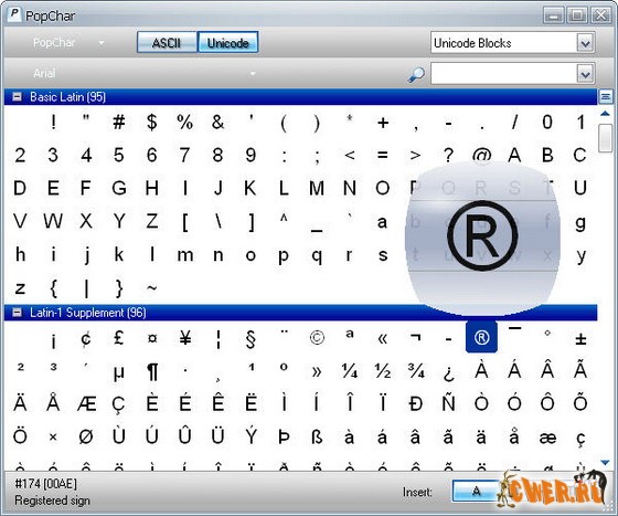Так почему так полезна программа PopChar Win, пришедшая в Windows от Mac'a? Да потому что, она позволяет вставлять спецсимволы в тексты "на ходу", не теряя времени на подбор различных комбинаций клавиш или поиск их в Интернете. Просто с помощью мыши наведите и выберите необходимый символ, и он будет вставлен куда угодно - будь то текстовый редактор или email клиент. Программа может быть запущена определенной комбинацией клавиш и закрывается немедленно, сразу после вставки символа.