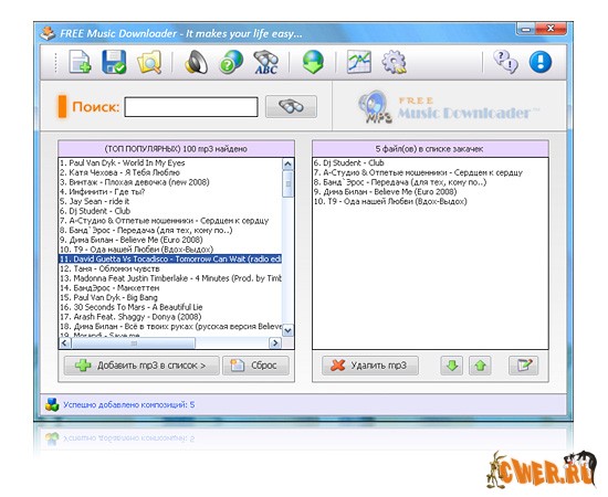 FREE Music Downloader - известная программа от разработчика Zaycev Downloader для поиска, скачивания и предварительного прослушивания музыкальных файлов в формате MP3 - с двух наиболее популярных русских порталов!
