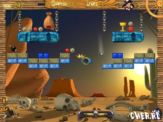 Замечательный арканоид, где вместо шарика вы будете стрелять пушечными ядрами! Передвигаемся с уровня на уровень и ищем пиратские сокровища!