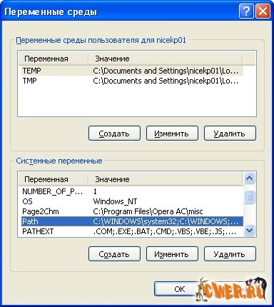 Далее, в окне «Системные Переменные» жмем на строку в которой в поле «Переменная» написано Path (возможно придется пролистать бегунок списка вниз, дабы увидеть эту строку) и жмем кнопку «Изменить»