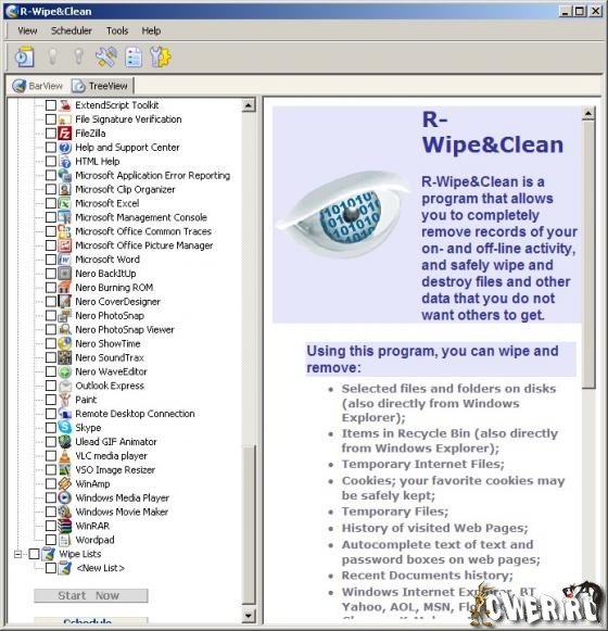 R-Wipe & Clean - это эффективная утилита очистки дискового пространства и сохранения конфиденциальности информации. R-Wipe&Clean полностью удалит временные интернет файлы, журнал посещенных страниц, куки, автозаполняемые формы и пароли, файлы подкачки, список недавно использовавшихся документов, список часто используемых компонентов, хранящихся в системном реестре, временные файлы и т.д. Это сделает невозможным восстановление конфиденциальной информации о вашей сетевой или локальной активности.