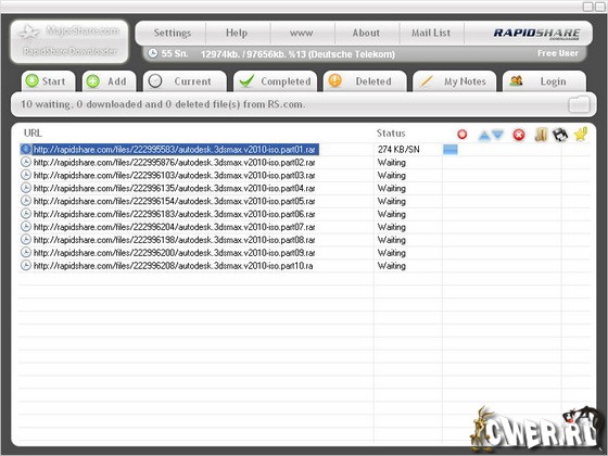 MajorShare RapidShare Downloader программа для пакетной загрузки файлов с широко известного файлообменника RapidShare. Поддерживается как Free так и Premium загрузки. Особенно полезен для пользователей, не имеющих премиум аккаунта и является неплохой альтернативой Universal Share Downloader (USD), и Jdownloader RapidShare Autodownloader.