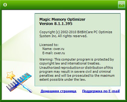 Скачать программу Magic Memory Optimizer 8.1.1.395 + Rus (1,75 МБ):