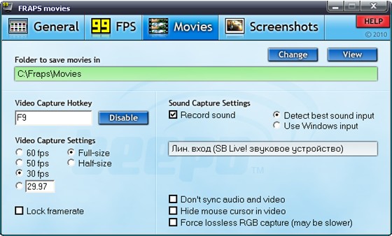 Fraps состоит из трех модулей Benchmarking Software, Screen Capture Software, Realtime Video Capture Software. Benchmarking Software - показывает, сколько кадров в секунду (FPS) выдает ваше 3d-приложение. Позволяет сохранять статистику на диск. Screen Capture Software - позволяет при нажатии горячей клавиши снимать скриншоты экрана любого 3d-приложения или видео-фильма. Все скриншоты автоматически переименовываются и датируются. Realtime Video Capture Software - позволяет записывать все, что происходит на экране монитора в видео-файл. Захватывает звук и видео вплоть до разрешения 2560x1600 и 100FPS, идеально подходит для записи игр.