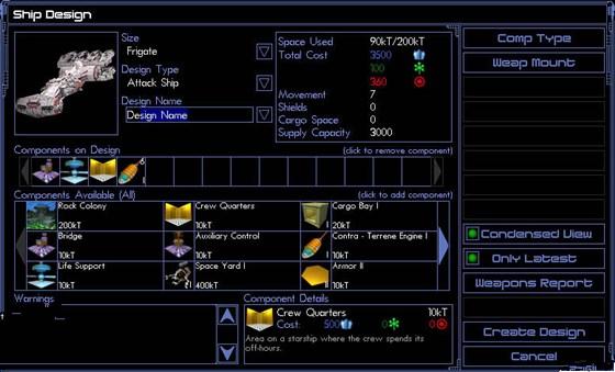 - Возможность создавать корабли произвольной конструкции с любыми техническими характеристиками