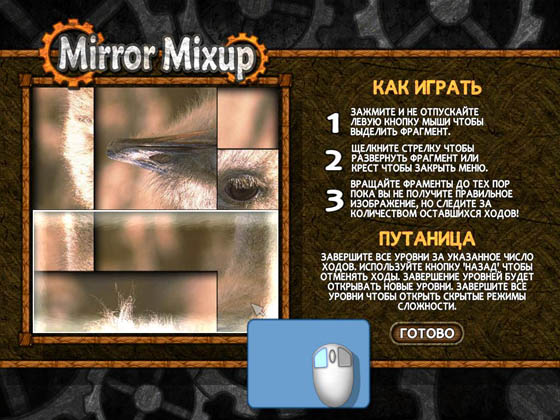 Mirror Mixup - это игра-головоломка, которая приносит новый поворот в стандартный геймплей. Уровни решаются путем выбора области рисунка и поворота их вертикально или горизонтально. MirrorMixup имеет 4 режима игры. Есть 150 уровней и 200 бонус-уровней. Игра позволяет использовать ваши картинки и музыку. Игра MirrorMixup проста, но она в то же время заставляет ваш мозг работать.