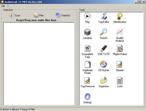KC Softwares AudioGrail - сборник утилит для работы с аудио-файлами, в форматах MP3, OGG, MPC, APE, AAC, FLAC, WavPack и другими. С этой программой Вы сможете с легкостью переименовывать файлы, редактировать теги, анализировать качество, сортировать файлы, осуществлять нормализацию звука и т.д.