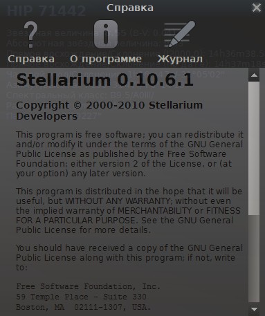 Stellarium - астрономическая программа с многоязычным интерфейсом. В масштабе реального времени прорисовывает трехмерное фотореалистичное изображение неба, отображает звезды, созвездия, планеты; имеется карта созвездий со всеми их изображениями, дошедшими до нас от древних. Имеется ночной режим показа, отображение границ созвездий, можно выбрать "домашнюю" планету.
