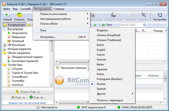 Скачать программу BitComet 1.27 Stable (14,71 МБ):