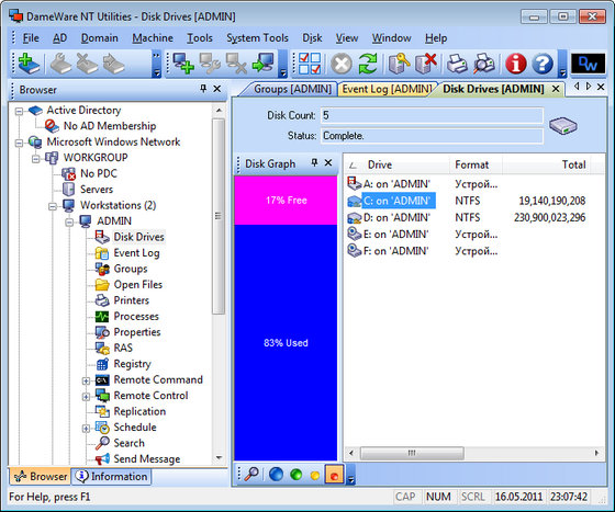 Ключевые возможности DameWare NT Utilities: