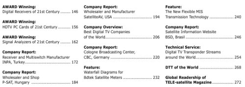 Самый авторитетный в мире спутниковый журнал. Это по сути полный перевод англоязычного журнала Tele-Satellite. Журнал может стать отличным источником информации о спутниковом телевидении и интернете. В нем всегда каждый пользователь сможет прочитать обзоры техники, советы по настройке и многое другое.
