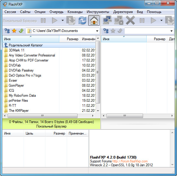 Программа позволяет производить и организовывать передачу данных не только между локальным компьютером, но и двумя удаленными FTP-серверами. Используя FlashFXP, очень удобно производить загрузку файлов, которые расположены в разных папках или даже на разных FTP -серверах. Все файлы, которые необходимо скачать, можно поместить в очередь. Программа запомнит их расположение, при старте загрузки выполнит соединение с сервером, перейдет в нужную папку и начнет закачку. Имеет простой и понятный пользовательский интерфейс с полной поддержкой русского языка.