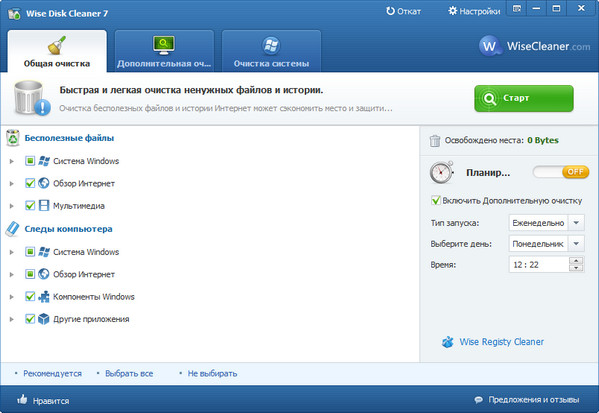 Wise Disk Cleaner - программа для быстрого и легкого освобождения свободного места на жестком диске. Утилита удаляет ненужные мусорные файлы, которые не используются программами, установленными в вашей системе. Программа может определять более 50 типов мусорных файлов, и вы можете сами добавлять любые типы файлов, которые считаете мусором. После того, как программа просканирует систему на наличие мусорных файлов, можно индивидуально посмотреть каждый файл и подробную информацию о нем, после чего решить, стоит ли его удалять. Имеется также возможность удалять все ненужные файлы в автоматическом режиме. Программа имеет приятный пользовательский интерфейс.