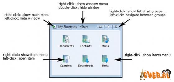 Сколько вы затрачиваете времени в течение дня, для того чтобы запустить программу, открыть документ открыть привычную веб-страницу? С XStart вы можете сократить это время в несколько раз! Держите Рабочий Стол чистым, сократите число ненужных манипуляций, создавайте группы необходимых программ, команд и документов с Roxip XStart, - простой, удобной и интуитивно понятной "стартовой площадкой" как хорошей альтернативе бестолковому меню "пуск". Программа полнонастраиваемая и работа с ней начитается с простого... вбрасывания иконок в ее окно, или группового "добавить".