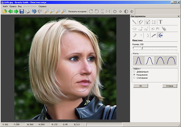 В этой программе объединились сразу два известных продукта - MakeUp Guide и Cosmetic Guide, что позволило Beauty Guide полноправно занять свою нишу среди программ для исправления косметических дефектов на портретах. С ее помощью можно удалить родимые пятна, исправить форму носа, подвести брови, разгладить кожу, отбелить зубы и много чего еще. Или же просто весело пошутить над фотографией друга. Следуя доброй традиции, разработчики из Tint Guide включили в комплект с программой анимированные примеры для ускорения освоения Beauty Guide. Вместе с программой доступен плагин для Photoshop-совместимых редакторов.