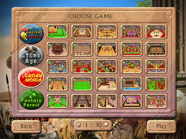 Увлекательный арканоид никого не оставит равнодушным. Четкая, красочная 3D графика погружает тебя в новую реальность. На экране мелькают пейзажи Каменного века, Древней Греции, заколдованный лес и колонны античных храмов. Но иногда ты их просто не замечаешь. Лишь бы уследить за сверхскоростным перемещением мяча