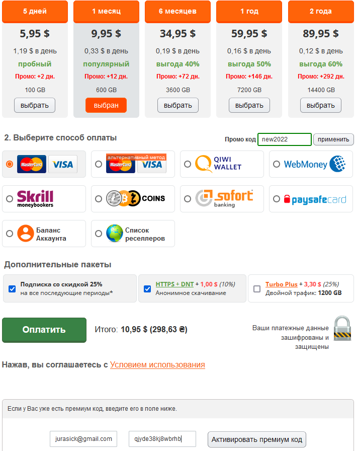 Друзья, меня обманули. Прислали ключ уже зарегистрированный на чей-то адрес. Ну да ладно. Пусть будет помощь сайту. Теперь приобретаю ключи напрямую, Без посредника. Обратите внимание на цену, которую предлогают тут на сайте сейчас. 715 руб на месяц со скидкой 30%. Посмотрел цену на турбобит — 786 руб На месяц. Если взять 30% скидку, как тут пишут, то сумма получается 551 руб. Надеюсь Вы поняли о чем речь.
