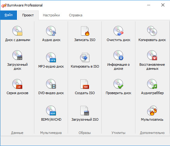 BurnAware Professional - компактная и простая в использовании программа для записи файлов на CD, DVD, Blu-Ray и HD-DVD диски. Поддерживает работу с любыми типами оптических дисков (включая CD-R/RW, DVD-R/RW, DVD+R/RW, BD-R/RE, HD-DVD-R/RW и DVD-RAM) и аппаратными устройствами записи. Есть возможность создания образов, записи мультисессионных дисков, проверки записанного содержимого.