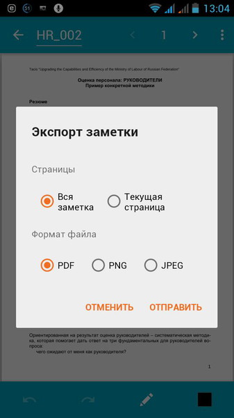 • Экспорт заметок в форматы PDF, PNG или JPEG для печати, архивации или пересылки другим пользователям.