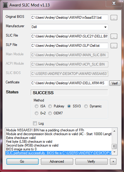 В Status будет написано SUCCSESS, а на выходе получится уже модифицированный файл BIOS.