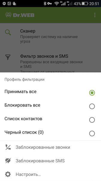 - Антиспам. Защита от нежелательных СМС-сообщений и звонков.