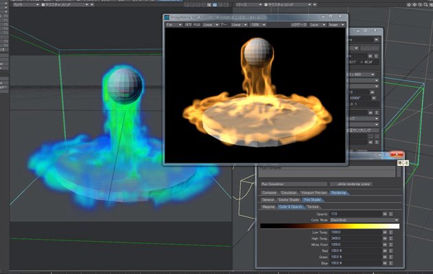 - Для каждого воксела плагин рассчитывает скорость движения, а также каналы для описания температуры, плотности дыма, количества топлива и т.д.