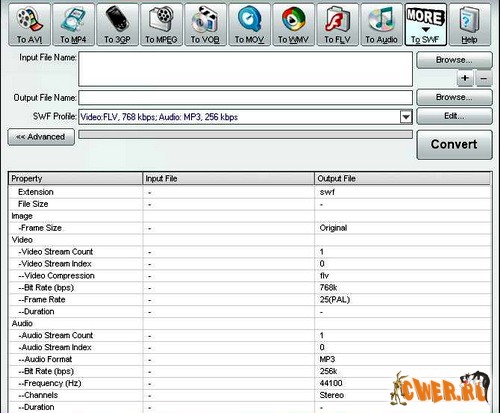 Наверное уже всем известная программа, которая позволяет конвертировать любые видеофайлы в форматы 3gp (формат мобильных телефонов и наладонников), mp4, psp, iPod, swf, flv, DVD, VCD. Total Video Converter поддерживает чтение и проигрывание большого количества видео и аудио форматов (3gp, mp4, psp, iPod, swf, flv, DVD, VCD, mp3, ac3, ogg, wav, aac...), а также конвертирует их в популярные video/audio форматы и форматы мобильных телефонов и наладонников.