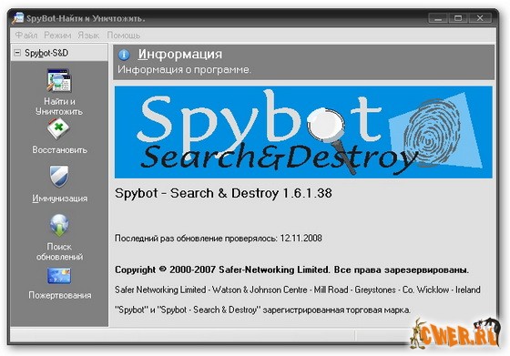 Скачать SpyBot - Search & Destroy 1.6.1.38 (15,2 МБ):