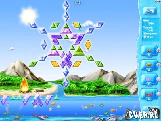Оригинальная головоломка одновременно напоминает игры знаменитых и популярных жанров тетрис и маджонг. В этой игре вам предстоит ловить волшебные льдинки, падающие с неба, и складывать из них фигуры экзотических животных, чтобы освободить их из ледяной тюрьмы. Льдинки состоят из множества маленьких треугольников и имеют самую разную форму. Их можно поворачивать, чтобы разместить в подходящем свободном месте. Те кусочки льда, которые вы не успеете поймать, падают в море. Их всегда можно достать оттуда, но когда плавающих льдинок станет слишком много, — море замерзнет, и вы проиграете. Чтобы пройти игру, нужно сложить шестьдесят фигур.