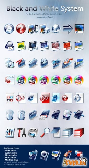 16 иконок в формате PNG - 128x128 и 256х256 пикселей.