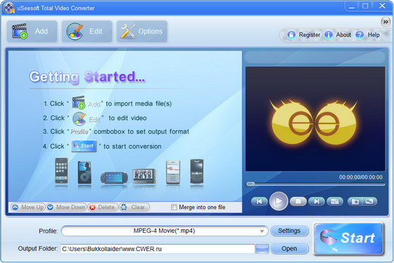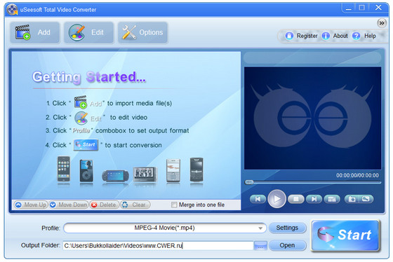 uSeesoft Total Video Converter - это лучший видео конвертер, который может конвертировать видео-файлы с быстрой скоростью + максимально лучшим качеством видео. Программа может конвертировать видео-файлы в любой формат видео, например преобразование AVI в MPEG, WMV в AVI, WMV к MPEG, MKV в AVI, MKV в MP4 и т.д.