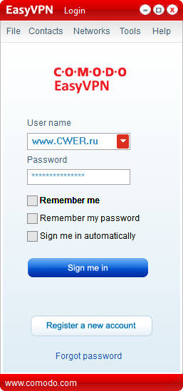 Comodo EasyVPN - программа для создания виртуальной защищенной одноранговой сети, работающей через Интернет и подключения к ней любого количества компьютеров вне зависимости от того, где они размещены. Имеет простой удобный интерфейс и несложную настройку виртуальной сети.