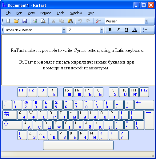 Читать русский текст переписки через латинский транслит для большинства, невыносимая мука. RuTast - программа, позволяющая русскоязычным пользователям, находящимся за рубежом, на чужбине, и использующим не русскую OC, свободно писать сообщения на русском языке при помощи, используемой ими привычной английской клавиатуры.