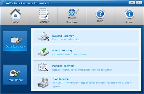 wGXe Data Recovery Professional - это инструмент, который поможет вам восстановить данные всех типов, включая Word, Excel, Access, Power Point, аудиофайлы и т.д. Данные можно восстановить с файловых систем NTFS, FAT. Программа не только восстанавливает данные с жестких дисков, но также и с USB карт, карт памяти и других носителей. Независимо от того, каким путем вы потеряли данные, wGXe Data Recovery Professional поможет вам точно и аккуратно их восстановить.