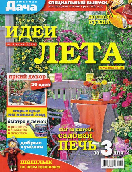 В этом номере собрано множество увлекательных и вдохновляющих, но очень простых в реализации идей дачного декора. С их помощью вы без особого труда расставите и в саду, и в доме необходимые акценты. Найдете новое, неожиданное применение вышедшим из употребления вещам. Наполните вашу любимую дачу яркими красками и забавными деталями. Это займет совсем немного времени, зато как много удовольствия вы получите!
