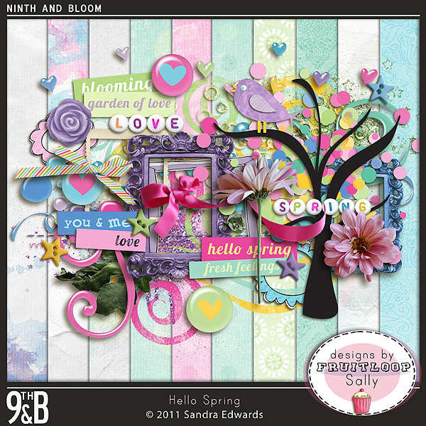 небольшой скрап-набор Hello Spring с фонами различных оттенков, яркими узорами, звёздочками, пузырями, рамками, вордартами.