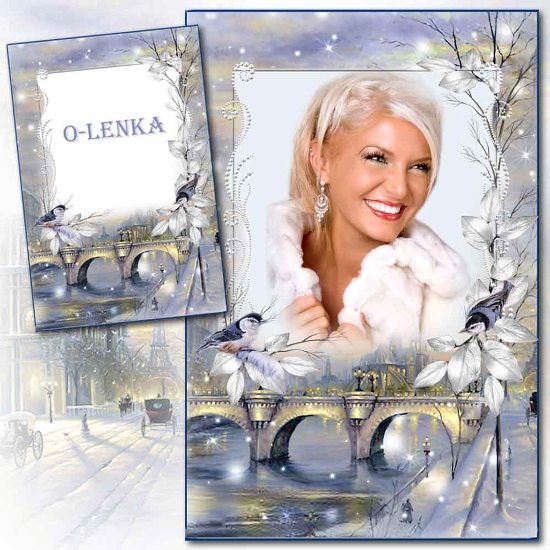Зимняя рамка для фотошопа - Наступила зима, снегири прилетели