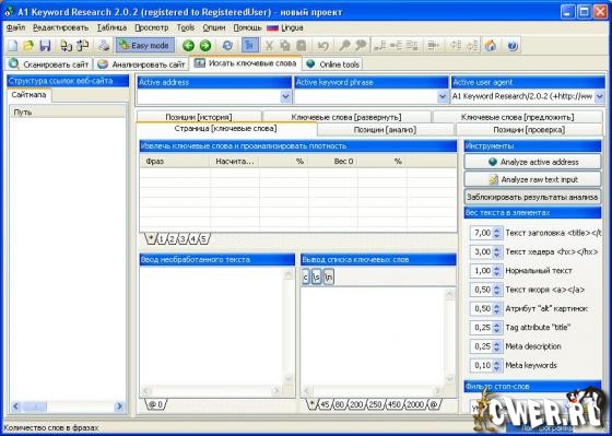 A1 Keyword Research — программа позволяющая проанализировать Ваш сайт и подобрать для него наиболее подходящие ключевые слова, используемые в поисковых системах. Данный исследовательский инструмент позволяет проанализировать сайты Ваших конкурентов, предложит ключевые слова для Вашего сайта, проверит позиции сайта в поисковых системах, увеличит списки ключевых слов Вашего сайта и поможет оптимизировать страницы на плотность и известность ключевых слов.