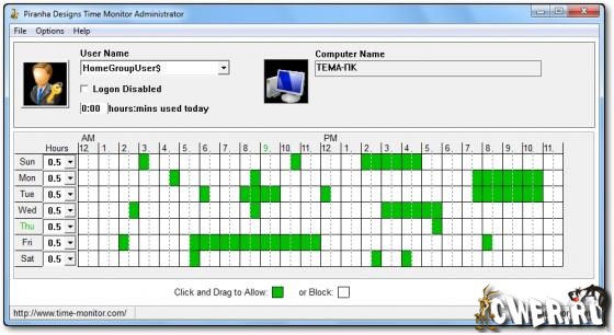 Salfeld Child Control - программа ограничивает время, проводимое вашими детьми за компьютером, как только выделенное им время закончится, компьютер автоматически выключится и повторный вход будет возможен только после ввода пароля. Ограничение можно ввести как по общему времени (например, не более 1 часа в день), так и по периоду времени, когда можно работать (например, с 22:00 до 8:00 доступ запрещен). Кроме этого, программа позволяет запретить посещение нежелательных сайтов, а также заблокировать доступ к определенным дискам и папкам.