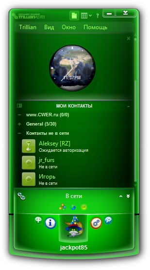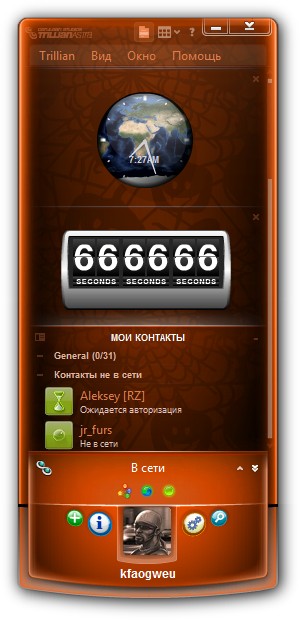 Trillian - универсальный интернет-пейджер, который позволяет обмениваться сообщениями пользователям сетей ICQ, AOL Instant Messenger, MSN Messenger, Yahoo! Messenger и IRC. Программа поддерживает использование большинства основных функций этих сетей (таких как, обмен файлами, просмотр и изменение информации, настройки безопасности и прочее) и имеет удобный и легко настраиваемый интерфейс с поддержкой скинов и прозрачности. Также, в наличии имеется функция автоматического обновления, возможность работы через прокси, звуковое оформление событий и архив сообщений.